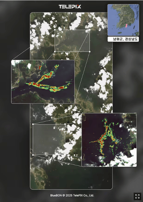 TelePIX's BlueBON detects 18.3㎢ red tide band off South Korea coast